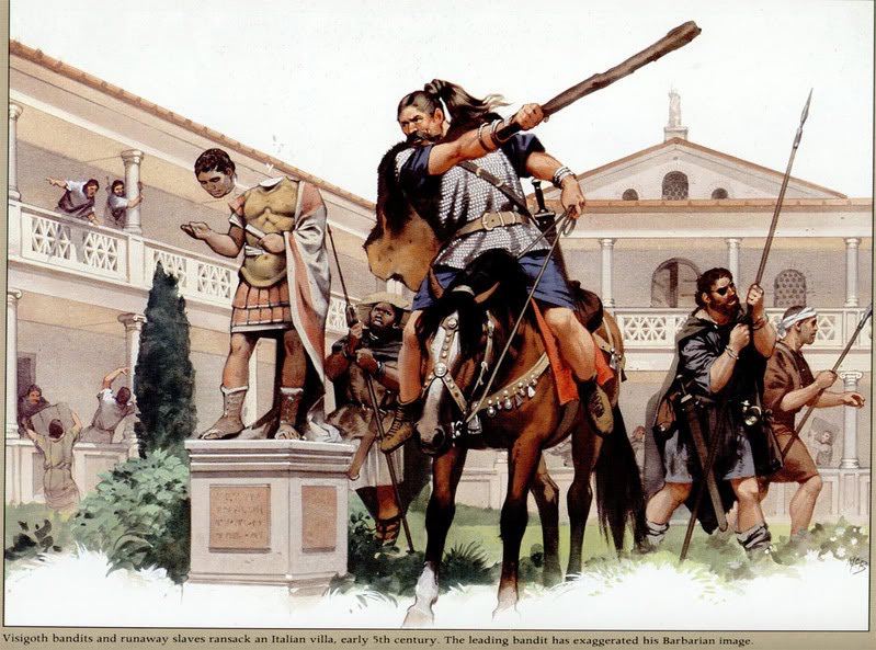 Habitando as regiões fronteiriças ao Império Romano, os povos bárbaros foram penetrando os territórios de Roma em num processo lento e gradual. Inicialmente, dado o colapso da estrutura militar e as constantes guerras civis, os imperadores romanos realizavam acordos, pelos quais os bárbaros ganharam o direito de habitar essas regiões. Em troca, eles defendiam a fronteira da invasão de outros povos. Esses primeiros bárbaros, incorporados ao mundo romano, ficaram conhecidos como federados.